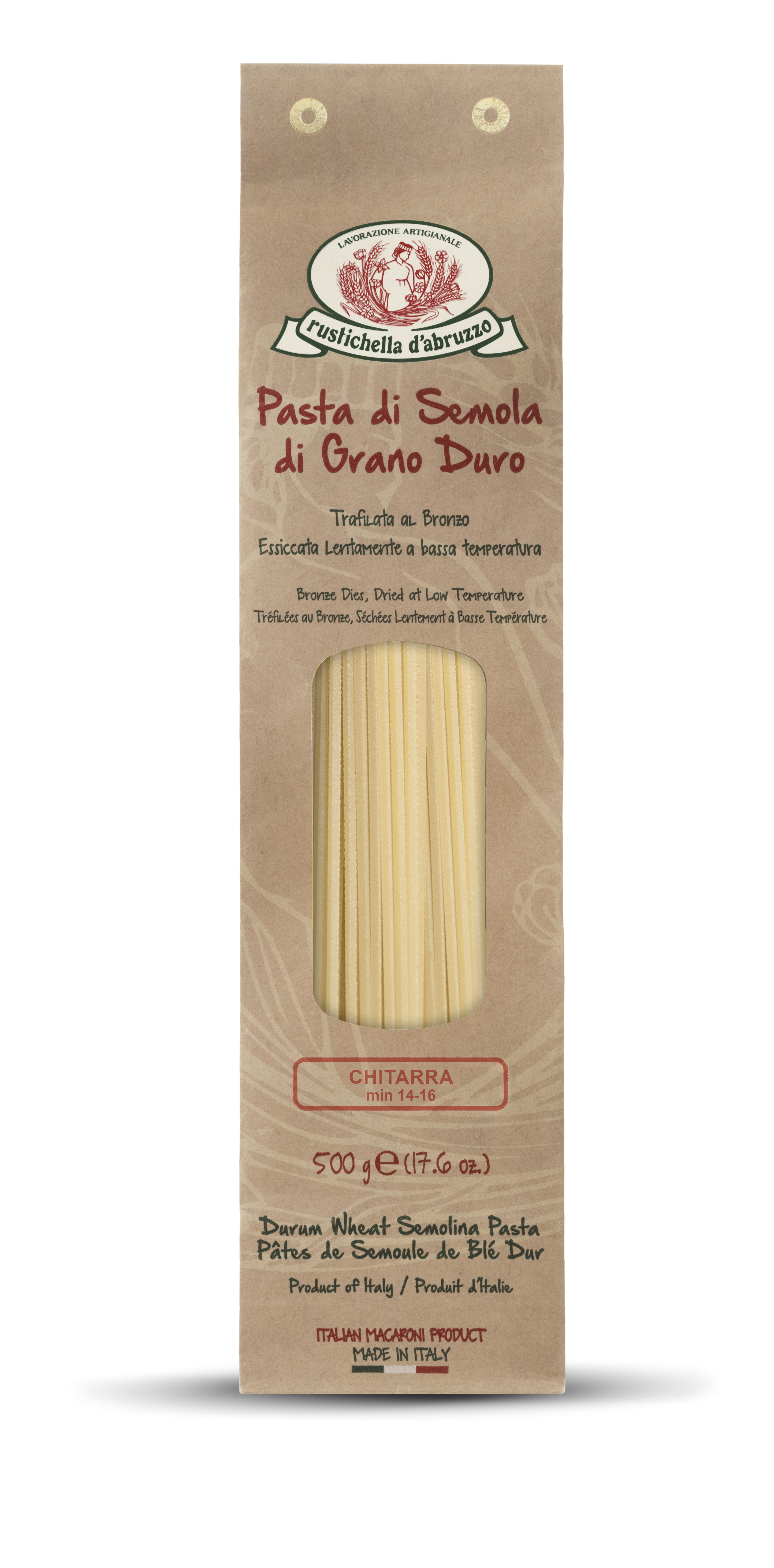 源自阿布魯佐的傳統手工方形麵(切面為方型),因使用傳統金屬弦工具「chitarra」切麵而得名。賦予麵條獨特的厚實口感,能完整吸附醬汁。