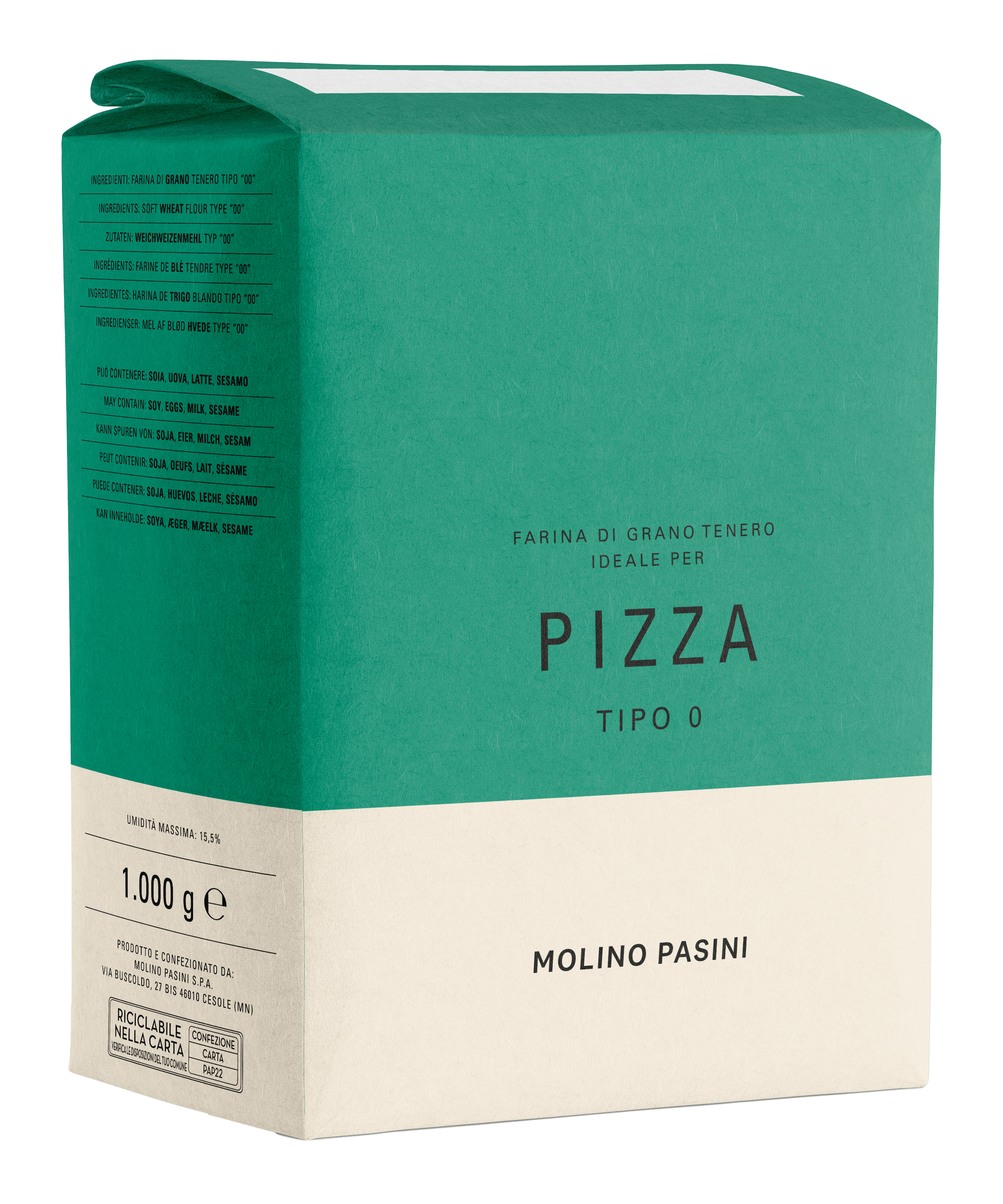 適合中短發酵時間的披薩麵糰,為中筋與高筋麵粉混合而成的傳統比例,延展性佳,推薦製作薄脆口感的羅馬式披薩、佛卡夏和Grissini義式麵包棒。